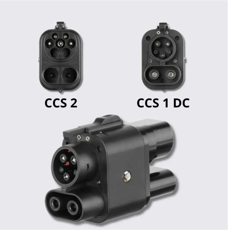 Перехідник CCS2-CCS1 DC призначений для заряджання американських електромобілів на європейських швидкісних зарядних станціях постійного струму з роз’ємом CCS Combo 2.